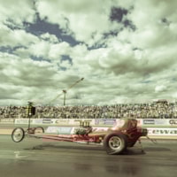 WB 6 "Backdraft" Slingshot Dragster originally built in 1969 as "Malibu Express" later became "Pink Panther" in 1973. Owner/Driver "Crazy" Chris Hartnell bought the rolling chassis in 1992 and "Backdraft" debuted in April 1995. We are celebrating our 32nd year with the slingshot! Chris' Best ET and Speed are 8.629 @ 153.57mph. Crew members are partner Claire Meaddows and sons Lee & Mark Hartnell.